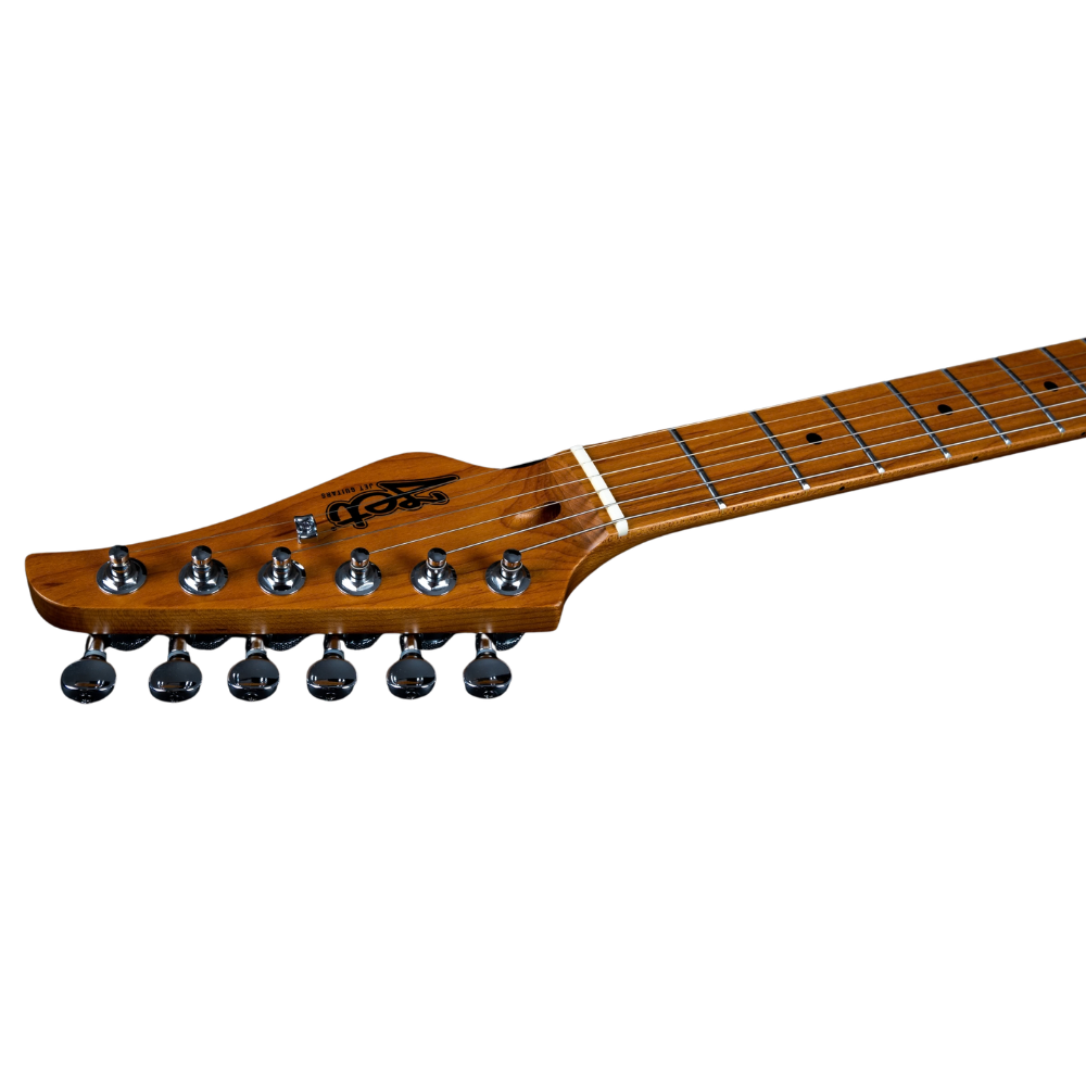 El diapasón de arce tostado con radio de 9,5" y 22 trastes facilita tanto acordes como solos, mientras que la escala de 25,5" aporta claridad y definición en cada nota. Equipada con dos pastillas humbucker Alnico fabricadas en Corea, ofrece un sonido potente y versátil. El sistema de controles con volumen, tono, selector de 3 posiciones y función push-pull amplía las posibilidades tonales. Además, incorpora clavijero con afinadores con bloqueo y puente fijo, lo que mejora la estabilidad de afinación y la fiabilidad durante el uso.