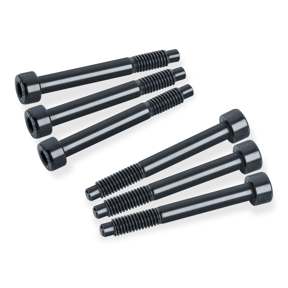 Estos tornillos presentan una rosca M4 y una longitud estándar de 34 mm, lo que garantiza compatibilidad total con puentes Schaller Tremolo, Schaller LockMeister y Floyd Rose Original (OFR) de fabricación alemana. Su construcción robusta asegura una sujeción estable de las cuerdas, contribuyendo a una afinación precisa y una respuesta óptima del puente.
